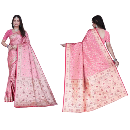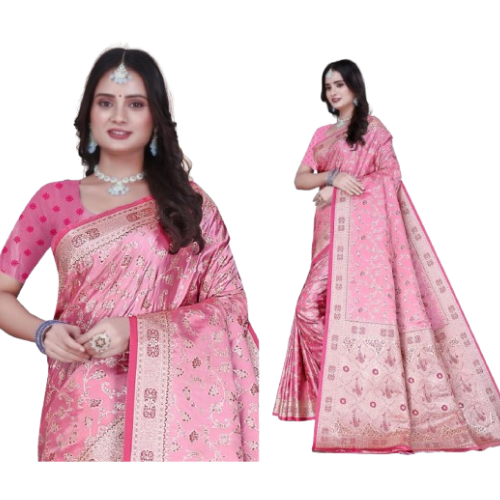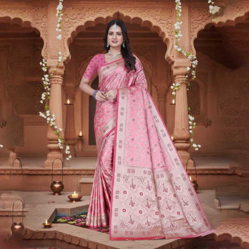 Heavy Jaal Work Saree-Pink Gold